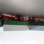 Die Modelle der Motorwagen wurden zunächst komplett vorsichtigst zerlegt, und da Conrad leider bei den Hängern auf die Darstellung eines Rahmens verzichtet hatte, die Hänger vermessen, und per CNC Fräse zwei passende Rahmen angefertigt, ebenso die verlorenen Scheinwerfereinsätze und mit eingebaut. Da die beiden roten Fahrgestelle der Motorwagen bestens erhalten waren, erübrigte sich da eine neue Lackierung. Anders die Ladebrücken und die Fahrerkabinen. Sie wurden neu lackiert und auch die angefertigten Rahmen der Anhänger. Da diese Modelle auch noch keine Spiegel hatten, wurden Löcher gebohrt und Spiegel angefertigt und angesetzt.