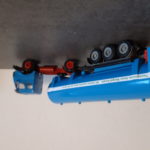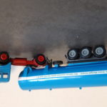 Bei beiden Modellen, die ich in den letzten Tagen restaurieren konnte, waren FH und Brücke, aber auch die Planen stark durch UV-Licht ausgeblichen und vergilbt und es fehlten bei beiden Modellen je ein Scheinwerfereinsatz. Bei einem der Anhänger fehlte auch die Deichsel. Die fehlenden Teile wurden mit der Fräse angefertigt und die Planen mit Kunststoffhaftvermittler zuerst Vorlackiert und danach je ein Paar mit matter grauer Grundierung und mattem umbragrau lackiert.