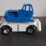 Dieses Modell habe ich zerlegt, den Ausleger abgenommen, die Kurbeln entfernt und am Prospekt die Oberwagenmaße verglichen. Die Größe des Oberwagens entspricht der des Fuchs 712 SS. Der Fuchs 712 SS ist ein Umschlaggerät der 1970iger Jahre. Die Besonderheit bei dem Gerät: Es gibt 2 Führerstände in der Kabine. Der Fahrer dreht nur den Sitz und kann mit dem transportfähig gemachten Gerät einen anderen Einsatzort anfahren. Dabei ist es in der Lage, Polypgreifer und Magnet während des Transports selbst mit an Bord zu haben.