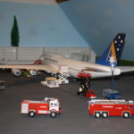Dieses Thema wurde dann auch noch verstärkt angestoßen, weil mir eine Verkehrsmaschine in 1:50 angeboten wurde. Nachdem ich selbst bereits einige Fahrzeuge wie z. B. Flugzeugschlepper, Tankwagen und andere selbst gebaut hatte und ich auch ein Löschfahrzeug von NZG in 1:50 in meiner Samlung hatte, war der Reiz groß, ein Diorama als Ausschnitt eines Flughafens mit Flugfeldfahrzeugen zu gestalten. Das bedeutete aber, sich mit den Flugfledfahrzeugen zu beschäftigen und evtl. auch solche selbst zu bauen, da es hier kaum wirklich einsetzbare Modelle gibt. Zudem entstanden verschiedene Flugfeldlöschfahrzeuge, Vorfeldpflege-Fahrzeuge und nun auch im Maßstab 1:50 Flugzeugschlepper. Also wurde das Fehlende selbst gebaut. Basis waren die LKW´s und Vans von Conrad, NZG und Solido.