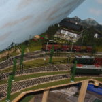 Nicht nur die Spannung, sonderen auch die Oberleitung breitet sich über die Anlage aus. Wenn nun bald die Möglichkeit besteht nicht nur mit Dampf und Diesel über meine Anlage zu fahren, sondern auch mit meinen selbstbau E-Lok Oldies. Sobald der Bahnhof Seefeld die Atrappenoberleitung erhalten hat, wird diese von der Brücke aus in den anderen Bahnhof (Mittenwald?) gebaut. Ich weiß noch nicht wie ich ihn nennen soll und dann kann ich fahren, fahren, fahren!… Ich freun mich schon drauf!!