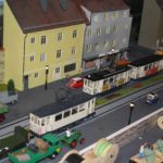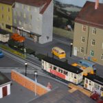 Noch spannender wird es, betrachtet man die Straßenbahnanlage. Die Straßenbahnen sind im Maßstab 1:45 gebaut, das Gleis kommt von ETS aus Tschechien, die Gebäude sind Eigenbau, manche Fahrzeuge auch, oder auch Umbauten.