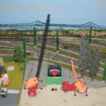 Beabsichtigt ist in die Landschaft möglichst unauffällig Fahrregler und Bedienelemente einzubauen. Ich bin gespannt, wie das Experiment gelingen wird. An das Haus soll sich im Bereich des Trafos das Neubaugebiet mit einer Baustelle präsentieren. darin kaschiert liegen dann die Schalter und der Trafo hinter einer Gebäudefront, die für den Betrieb entfernt wird. Auf diese Weise soll aus der Anlage mit verschiedenen Elementen auch eine Fotokulisse und ein Dioama für meine Modellbauaktivitäten werden.