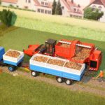 Das letzte Bild zeigt einen mit aus Buchweizen bestehenden Rübenladung beladenen Rübenvollerneter aus der eignen Modellbauwerkstatt bei der Übergabe der “Zuckerrüben” auf einen “Agrarlastzug”.