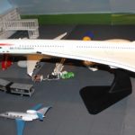 Die Concorde fand aus München zu mir, die kleine Falcon, der Bell Hubschrauber und der verlängerte Learjet waren Bausätze, die ich noch z. T. mit Figuren bestückte und die drei ATR flogen mir aus Berlin, Friedrichshafen und anderwo zu.