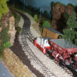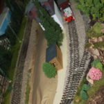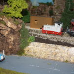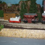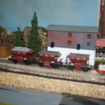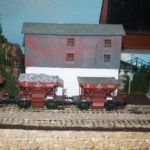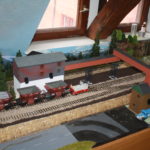 Auf einer 10 cm hoch gelegenen Platte, mit 30 cm Breite, wurden die Gleise neu verlegt. Das von Addie her bekannte “Schotterwerk”- es ist ja aber “nur” der Bunker (!) war, so wie es konzipiert war, für mich auf der Anlage nicht einsetzbar. Ich zerlegte daher den Gebäundekomplex, um ihn zu teilen. Das größere der Gebäude erhielt einen neuen Unterbau und wird als Verladebunker an der Bahn eingesetzt, und das kleinere als Bunker für LKW. Das Dritte, ein kleiner Schuppen steht ein wenig abseits des Hauptgebäudes. Die rämliche Trennung wird sich besser in die Anlage einfügen und die beiden Bunkergebäude erhalten noch jeweils einen Anschluss über eine Bandbrücke, die die Verbindung vom Brecher mit Siebanlage im Bruch, zur Verladung dar- und herstellt. Ob ich auch einen Teil des Steinbruches – wie ich das mal geplant hatte – darstellen werde, weiß ich zum jetzigen Zeitpunkt noch nicht. Es wäre reizvoll, braucht aber viel Platz… Wir werden sehen…