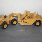 Als preiswertes und dankbares Basismodell für solche Umbauten ist der Müllverdichter von Joal zu nennen. Er ist das erste Modell in der Modellreihe (Bild 4) von mir umgebauter Cat -Modelle. Was viele nicht wissen, Caterpillar selbst hat oftmals Geräte nach Kundenwunsch abgewandelt und geändert. Nicht nur der als Bild 5 gezeigte Raddozer, der tatsächlich existierende Vorbilder hat ist so ein Stück, das nach Fotos von einem Original entstand, auch die Bilder 6 und 7 zeigen solche Geräte. Wobei es den Scraperzug von Bild 6 auch ohne Elevator gab und auch mit und ohne einem zweiten Motor am Heck.