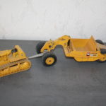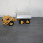 Die Bilder 8 und 9 zeigen sehr frühe Umbauten von mir, eine D9G ohne Schild als Zugraupe für einen Scraper und Bild 9 einen Tieflader für schweres Gerät z.B. im Einsatz im Tagebau. In Bild 10 ist ein weiterer Anhängescraper zu sehen, aus einem anderen, kleineren Modell von Joal entstanden. Da es bei diesen Fahrzeugen unterschiedliche Behältervolumen gab, hier ein Vergleich von den beiden Anhängescrapern. Bild 12 zeigt einen Wassertank für Großbaustellen.