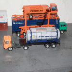 Es dürfte so um 1966/68 gewesen sein, dass ich in der Zeitschrift MIBA das erste Mal etwas über Container und der Handling gelesen habe. Vor einigen Wochen habe ich dann einen Peiner PPH 30 Straddle-Carrier von Conrad wieder erwerben können. Der wird zur Zeit restauriert und ich habe für die 1:50 Container von Tekno/WSI selbst zwei 2-achsige Containerchassis gebaut, eines für einen 20-Fuß-Container und eines für zwei 20-oder einen 40-Fuß-Container.
