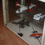 Der Blick in den Bildern geht erst von rechts nach Links und dann in die Vitrinen und auf das schwertse Modell, die Boeing 727 aus Aluguss!