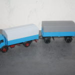 Mit der Pritsche eines MAN und einem 2-achsigen Fahrgestell von NZG habe ich mir einen dritten Hänger gebaut. Himmelblau lackiert ist er nun das Anhängsel für einen 2-achsigen ebenso himmelblau lackierten und restaurierten Mercedes SK oder NG. Ich gestehe die beiden nicht wirklich auseinander halten zu können. Ist ja auch nicht so wichtig. Hauptsache es entstehen dabei schöne Modelle.