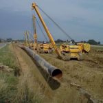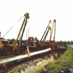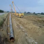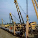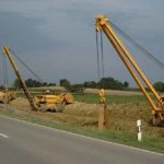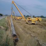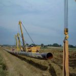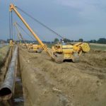 Haben Sie schon mal in die Röhre geschaut? Nein, nicht in die Flimmerkiste, die Glotze, in eine Pipelineröhre? Ich auch nicht. Gibt ja auch gar nicht so viel zu sehen. Aber wußten Sie, dass die Dinger bei einem Durchmesser von 1,20m  ca. 18 m lang und 8 Tonnen schwer sind? Ich bisher nicht. Aber das erklärt, weshalb man beim Pipelinbau große und schwere Geräte im Einsatz hat. Bei 10 aneinander geschweißten Rohren sind ca. 80 bis 90 Tonnen in den Graben zu wuchten. Und so ein Rohrleger kann je nach Typ zwischen 45 und 90 Tonnen bewältigen.