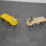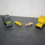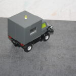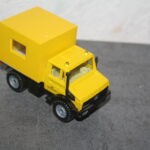 Die Bilder auf der Seite von LKW-Stefan sind schon sehr anregend. Mich haben sie dazu angeregt zwei Unimogs für den Einsatz als Kabelziehwinde umzubauen. Dabei kamen zwei Siku Modelle zum Einsatz. Das älter Modell wurde zeltgrau lackiert, das neuere rapsgelb und auch einer der beiden Gepäckkarren. Nun mag der interessierte Leser einwenden: Aber die sind doch 1:55? Und ich kann entgegnen mit nichten. Vergleiche mit den Originalabmessungen ergaben, dass die beiden Modelle im Maßstab 1:50 von Siku gemacht wurden…