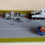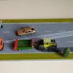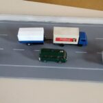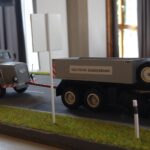 Ich tat das in der Form, dass ich mich mit dem Thema Ladungssicherung zunächst beschäftigt und dann eine Reihe von LKW-Modellen mit und ohne gesicherte Ladung in vier Kleindioramen ausgestellt habe.