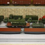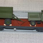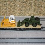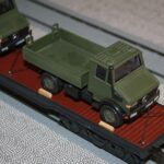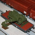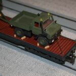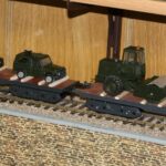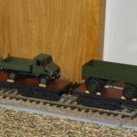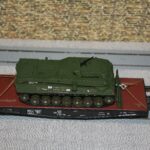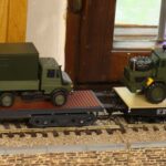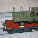 Da häufig die Verlegung der Pioniere auch per Zug erfogt, habe ich mir auch einige Flachwagen selbst gebaut, mit denen ich die Fahrzeuge auch per Bahn auf meiner Modellbahnanlage transportieren kann. So habe ich diese Technik nicht nur als dokumentierte Fahrzeugtechnik, sondern auch als interessantes Ladegut für meine Modellbahn verfügbar. Allerdings waren dafür so viele Waggons notwendig,dass ich mich entschlossen habe, diese aus Kostengründen selbst zu bauen.