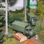 Aufgrund des oben erwähnten Gespräches habe ich mich entschlossen, einige Modelle in oliv zu machen. Sie umfassen LKW, Baugeräte und Panzer, wie sie bei der Armee zu finden sind und auch im Katastrophenfall zum Einsatz kommen. Es sind technisch Interessante und außergewöhnliche Fahrzeuge. Dazu gehören für mich auch Tieflader und Begleitfahrzeuge zur Sicherung im Konvoi, oder beim Transport per Tieflader. In zwischen gibt es bei der Armee aber auch in zivilen Farben Geräte, wie Bagger oder Planierraupen, die im Katastrophenfall zum Einsatz kommen.