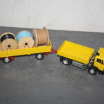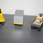 Für die gelbe Zugmaschine gab es dann auch gleich einen Dreiachsanhänger von Conrad. Ungewöhnlich ist da der von mir neu angefertigte Rahmen in feuerroter Lackierung, anstatt wie üblich in schwarz.