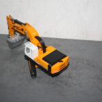 Leider leiden die Immitationen der Hydraulikschläuche und die Raupenbänder unter dem Einfluß der UV-Strahlung, was dazu führt, dass die Ketten irgendwann aufgrund Ihrer Versprödung reißen und die Schlauchleitungen brechen. Ich ersetze die Raupenbänder durch andere passende und behelfe mir bei den Leitungen dadruch, dass ich mit Microsteckerleisten an Ausleger und Oberwagen Aufnahmen schaffe, auf die ich dann die Ummantelung von 0,5 ² Kabeln, die man für den Bau der Elektrik bei der Modellbahn verwendet, auf entsprechende Maß abgelängt, aufstecke.