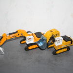 Mit diesem Wissen machte ich mit an die Arbeit. Ich fertigte mir auf dem PC einen Liebherr Schriftzug und die Zahlen 964 an, entfernte mit einem Watterstäbchen in Nitro getaucht die Zahlen 974 auf dem Ausleger des Hochlöffels und den Elefant auf dem Oberwagen des  Tieflöffels und ersetzte beides durch die selbst angefertigten Schriften.