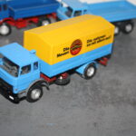 So entstand unter Verwendeung des Cursormodells und der Conrad Kabine ein Verteilerfahrzeug für das Speditionsgewerbe, eine Sattelzugmaschine mit Ladekran und zwei Zweiseitenkipper, je ein 2- und ein 3-Achser.