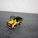 Stark abstrahiert und doch sieht jeder was es sein soll: Eine etwas größere motorisierte Schubkarre, ein Kleinmuldenkipper ein Minidumper, eben ein Autoschütter mit dem man über eine kurze Entfernung Material von A nach B auf der Baustelle karrt. Gerade, dass es noch eine Lenkrad hat.
