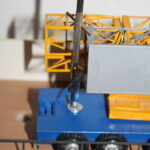 Die unten gezeigten Modelle entstanden nach Geräten der Firma Moog. Der Mast und die dreh- und klappbare Plattform entstand in Ätztechnik aus Neusilber bzw. wurden aus 1,5 mm Polystyrol gefräst. Die Fahrerhäuser und Fahrzeuge entstanden in Weißmetall-Gusstechnik. Fahrerhäuser stammen z. T. von Joal und Lion Toys. Auch ein Modell für die Schmalspurbahn entstand im Maßstab 1:45. Die Rhätische Bahn verfügte, bzw. verfügt über ein solches Gerät für ihre zahlreichen Viadukte, für Wartung und Pflege.