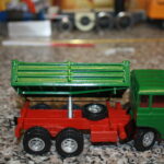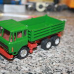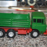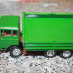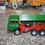 Die Aufnahmen zeigen eine abgebrochene Stoßstange und viele Lackschäden. Beim Blättern in meinem Buch über die Geschichte ds DAF 2600 fand ich als Kipperfan gleich mehrere Bilder eines 2600 6 x 4 Kipper. Für einen der Vorbilder habe ich mich entschieden. Das bedeutete erst einmal den LKW zu zerlegen und die Kabine zu bürsten, damit eine neue Lackierung gut aufgebracht werden kann. Außerdem musste ein neues Fahrgestell gezeichnet und gefräst werden.