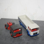 Die Bilder oben zeigen die 3 “Basismdoelle” für meine Umbauten der Solido Modelle. Links und Mitte ein Abschlepp- bzw. Feuerwehrfahrzeug, rechts ein Modellemit der F Kabine. Den LKW gab es auch als Autotransporer in einer sehr einfach gehaltenen Variante ohne LKW Rahmen. Diesen bildete der Aufbau.