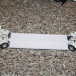 Die untere Reihe zeigt die (fast) fertigen Modelle (Rundumleuchte und Schild “Fahrzeug schert aus” fehlen). Dabei wurde einer der Tieflader mit normalen Felgen und einer mit Trilexfelgen ausgestattet.