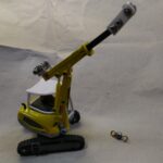 Er hat aus dem Modell einen Kran werden lassen. Damit jederzeit ein Anbau der ursprünglichen Schaufel möglich ist, hat er sich beim Umbau für 2 mm Schrauben entschieden. Interessant ist diese Variante alle mal. Deswegen zeige ich sie hier auch. Und ich könnte mir auch vorstellen, dass es solche oder ähnliche Varianten auch tatsächlich gibt…