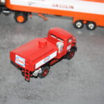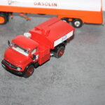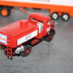 Einen solchen kleinen Rundhauber-LKW von Daimler habe ich mir vorgenommen und zum Tanklaster einer Esso Vertretung muttieren lassen. Der Aufbau ist Eigenbau, eine kleine Pritsche, um auch mal ein Faß Schmieröl mitnehmen zu können, oder auf der Fahrt zum Kunden Mayer bei Frau Huber 4 Kanister Heizöl vorbei zu fahren. Unter der Ladebrücke, links sitzt der Zählerschrank, Die Spindel mit dem Schlauch hinten rechts auf der Gehsteigseite. Eine Leiter zum Aufstieg zum Fülldom ist auch vorhanden. Heute darf man davon nicht mal mehr träumen, geht es nach Herrn Habeck.