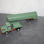 Es hat mir keine Ruhe gelassen: die Alu-farbene Pritsche für die 2-achsige sah ja ganz gut aus, aber passte nicht zur Epoche des LKW, weshalb ich die Pritsche in Resedagrün nachlackiert habe. Außerdem bekam ich noch einen restauarationsbedürftigen Sattelauiflieger, dem die Klappe am Heck fehlte und bei dem die Heckstoßstange beschädigt war, Außerdem war eine neue Lackierung unumgänglich und neue Räder.