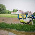 Bild 6: Der Mähdrescher schneidet den Mais und drischt ihn. Im Hänger landet nur das Korn, der Rest landet gehäckselt auf dem Feld. Mit Amarant lassen sich die Maiskörnen im Hänger darstellen und mit grünem Geländestreu die gehäckselten Maispflanzen, die später als Viehfutter verwendet werden können.
