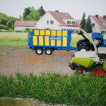 Was brauchen wir dazu? Oft nicht viel. Ich möchte hier zeigen, wie verhältnismäßig einfach das geht. In Szene setzen möchte ich die beiden umgebauten Modelle, Mähdrescher mit Maisschneidwerk zu Mais dreschen und den Häcksler zum Mais häckseln. (Bild 1) Benötigt wird dazu noch ein Traktor mit Ladewagen (Bild 2)