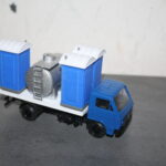 Wer sich mit Bauen und Baustellen beschäftigt wir im realen Leben wie auch im Modellbau immer wieder Mal mit dieser ach so menschlichen Seite des “Geschäftes” konfrontiert, und sei es nur, dass man über ein Modell eines DIXI-Klos stolpert. Schon länger hatte ich es im Kopf, ein solches Fahrzeug, das einerseits das Geschäft sammelt und entsorgt und andererseits die Toiletten dort hin bringt, wo sie gebraucht werden, z. B. auf Baustellen und Großveranstaltungen, einmal Realität werden zu lassen. Heute nun habe ich es geschafft und das vielleicht etwas skurile Fahrzeug, das uns aber immer wieder und täglich irgendwo begegnet, ist nun Teil meiner Modellautosammlung. Ein paar Details fehlen noch, aber nicht mehr lange. Ich hoffe, dass das gut geht und wünsche mir Toi,Toi, Toi dafür und jedem der es mal benutzen muss ein sauberes Klo. Toi,toi, toi.