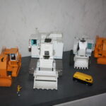 Für meinen H 135 S werde ich einen Tieflöffel fertigen, sodass der Bagger dann wahlweise mit Hoch oder Tieflöffel ausgerüstet werden kann. Ganz unten die drei “Miningbagger” im Größenvergleich H485s 135 S und 485 mit 185 und 135 S. Dazu zum Vergleich einen VW Bus in 1:50 und eine 1:50 Figur.