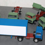 Es gibt also ein weites Feld, in dem diese Farzeuge zu finden waren. Mich reizen bei dem Typ eher die Nahverkehrsausführungen, da diese häufig anzutreffen waren. Die Kabinen für die Modelle entstanden im Resinguss, Rahmen und Aufbauten sind aus Polystyrol gebaut. Die Fahrzeuge besitzen eine Lenkung und eine pendelnde Hinterachse, also eine 3-Punktaufhängung, was garantiert, dass immer alle Räder auf dem Untergrund aufstehen. Lange habe ich an der Lösung getüftelt, es ist aber ganz einfach zu lösen und verbessert die Vorbildtreue ganz erheblich. In meiner Sammlung sind diese Fahrzeuge eine echte Bereicherung.