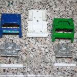 Ich habe für meine Umbauten der Modelle nur die Kabinen und deren Unterteil, also den vorderen Rahmen, aber ohne Stoßstange verwendet (Bild unten rechts Mitte). Diese wurde am Trittbrett über die ganze Breite abgeschnitten. Das Trittbrett blieb stehen. Um das Loch unter der Kabinenfront zu schließen, habe ich einen neuen Grill angefertigt, eingepasst und lackiert. (mittleres Bild vorne zeigt die Stoßstangen) Ovale Scheinwerfer Berliet, Doppelscheinwerfer Ford.