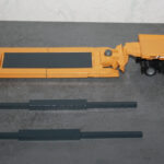 Vor ein paar Tagen stand ein Siku 1:50 Tieflader in gelb, ohne Zugmaschine im Netz. Da habe ich zugegriffen. Leider ist das Heck vermutlich durch einen Sturz leicht beschädigt. Aber das passiert ja auch im Betrieb der Geräte. Also kein Grund das Ding nicht einzusetzen. Und da ich noch eine gelbe Scania Zugmaschine frei habe erst recht.