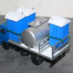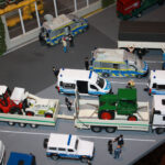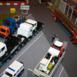 Zu den letzten 9 Bildern oben: Auch Havaristen müssen transportiert werden. Die obere Bildreihe zeigt, wie ich die Ladungssicherung an den Modellen ausgeführt habe. Gleiches gilt auch für den Entsorgungs- und Transportwagen der Toilettenhäuschen. ein bewußt er Gag auf dem Diorama, das sicher Manchem ein Lächeln aufs gesicht zaubern wird.