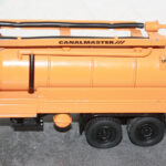 Der Mercedes mit dem Müller Saugmaster Kanalreinigungsaufbau war offensichtlich abgestürzt. Die Schlauchführung auf dem Behälter war verbogen, Die Hydrauliken und die Deckelscharniere oben am Heck, wo der Deckel angehängt war, waren am Behälter abgebrochen, ebenso die gelbe Rundumleuchte, die Stoßstange fehlte und die Lenkung der Vorderachse war blockiert durch Klebstoff.