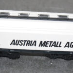 Seit Jahrzehnten gibt es, bzw. gab es bei Kleinbahn bunte, 6-achsige Waggons (rot, blau, silber, orange und weiß) zum Aluminiumoxydtransport. Es gab aber auch noch andere Beschriftungen, wie der H0Wagen unten zeigt.