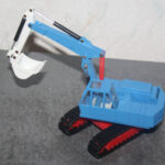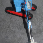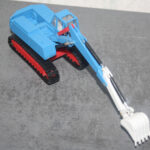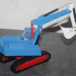 Nun noch den geteilten Ausleger gezeichnet und gefräst, die Hydraulik aus Messingrohr und Splinten gebaut, eine Inneneinrichtung für die Kabine gemacht; Den Oberwagen entlackt und neu lackiert, die Einzelteile zusammen gebaut und schon war der erste Fuchs 714 Oberwagen war fertig. Ihn habe ich auf einen selbst gefrästen Raupenunterwagen gesetzt, da das Fahrgestell des 714 M länger ist. Wer möchte, kann aber das Fahrgestell eines 712, auf der Seite, wo kein Räumschild angebracht ist abgeschneiden und verlängern. Auf diese Weise erhält man auch ein passendes Mobilfahrgestell.