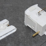 Inzwischen sind im Heck zwei Spanten eingezogen um die Rundung des Hecks richtig gestalten zu können und auch der Ausleger wurde gefräst. Einer der beiden Bagger wird mit den Gummiketten des Ackerman H25 von NZG bestückt. Ihm hatte ich bei einer Restauration andere Ketten gegeben (Siehe Bericht vom 19.10.24). Für den zweiten Bagger möchte ich mal versuchen, Ketten selbst zu bauen, in der Art, wie sie die Menck Bagger der 50iger Jahre hatten, bevor sie mit “Traktorfahrwerk” und 3-Stegketten ausgerüstet wurden.