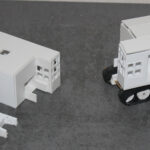 Heute nun wurde der Bagger in 1:50 in Angriff genommen. Anbei die beiden Varianten im Rohbau.