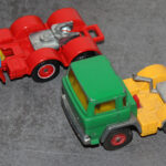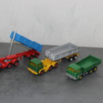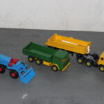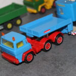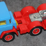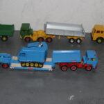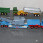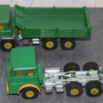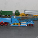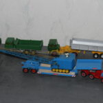 Solche Modelle sind z. B. die beiden Magirus Zugmaschinen, oder der Henschel mit Kippsattelauflieger, oder die grünen Magirus 3-achser Kipper und das Fahrgestell des Henschel der noch einen Kipper bekommen wird. Sie alle sind Umbauten die bei mir entstanden sind. Teilweise nur mit weniger als der Hälfte der originalen Teile. Eine richtige Resteverwertung.
