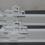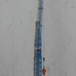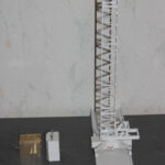 Da der Teleskopturm mehr Spiel brauchte, als gedacht und gewährt, wurde es nötig, einen zweiten, etwas schmäleren Turm zu bauen. Das hat den Nachteil, dass das erhöhte Spiel dafür sorgt, dass der Innenturm nach vorne knickt (s. Bilder). Dem begegne ich dadurch, dass ich bei ausgezogenem Turm, ein 1 mm strakes Plexiglasplättchen vorne, oben, zwischen Innen- und den Außenturm einschiebe. Diese kleine Ursache hat eine große Wirkung: Sofort steht der Turm gerade! In der Kabine ist ein Sitzvorhanden und sie ist verglast.