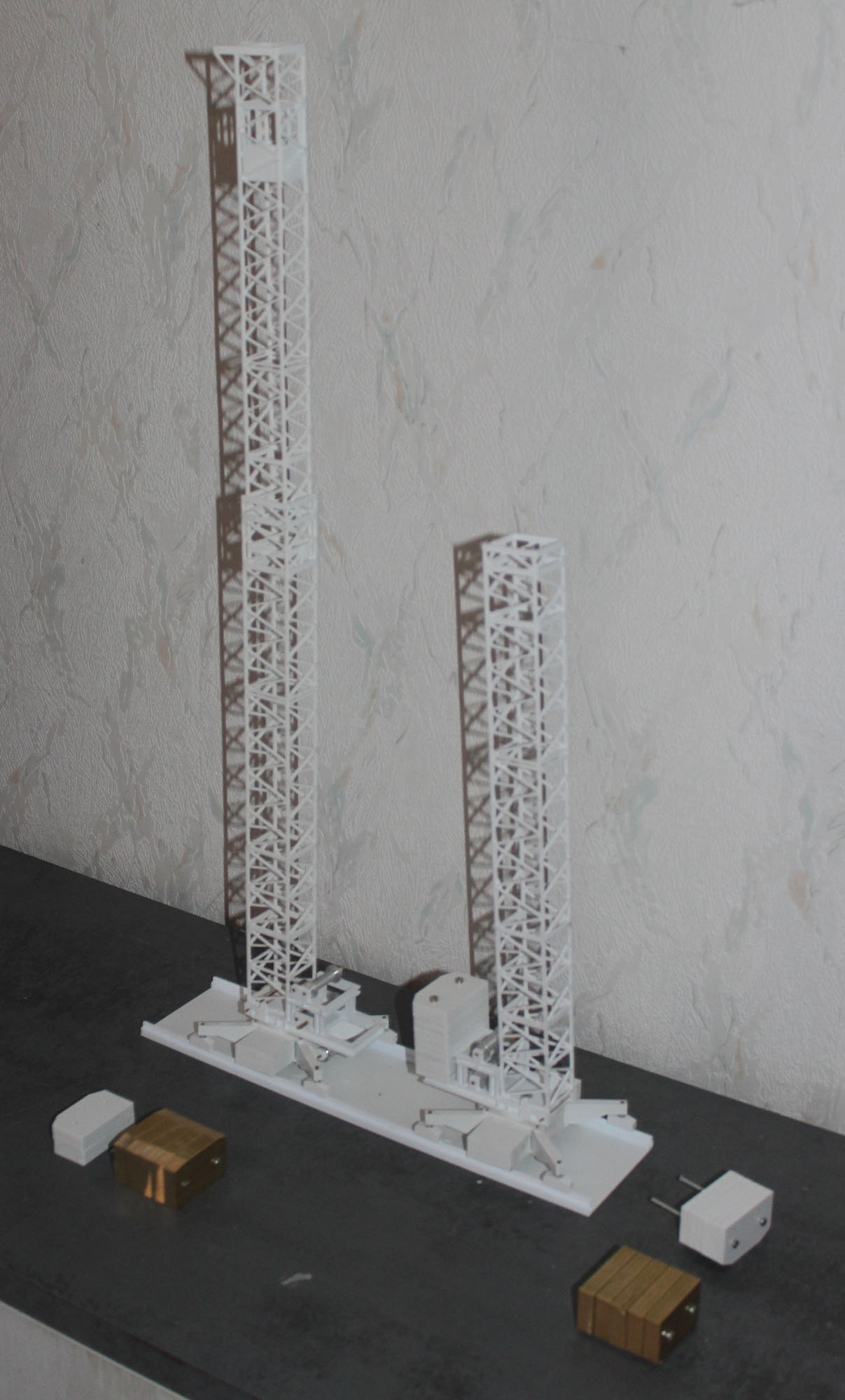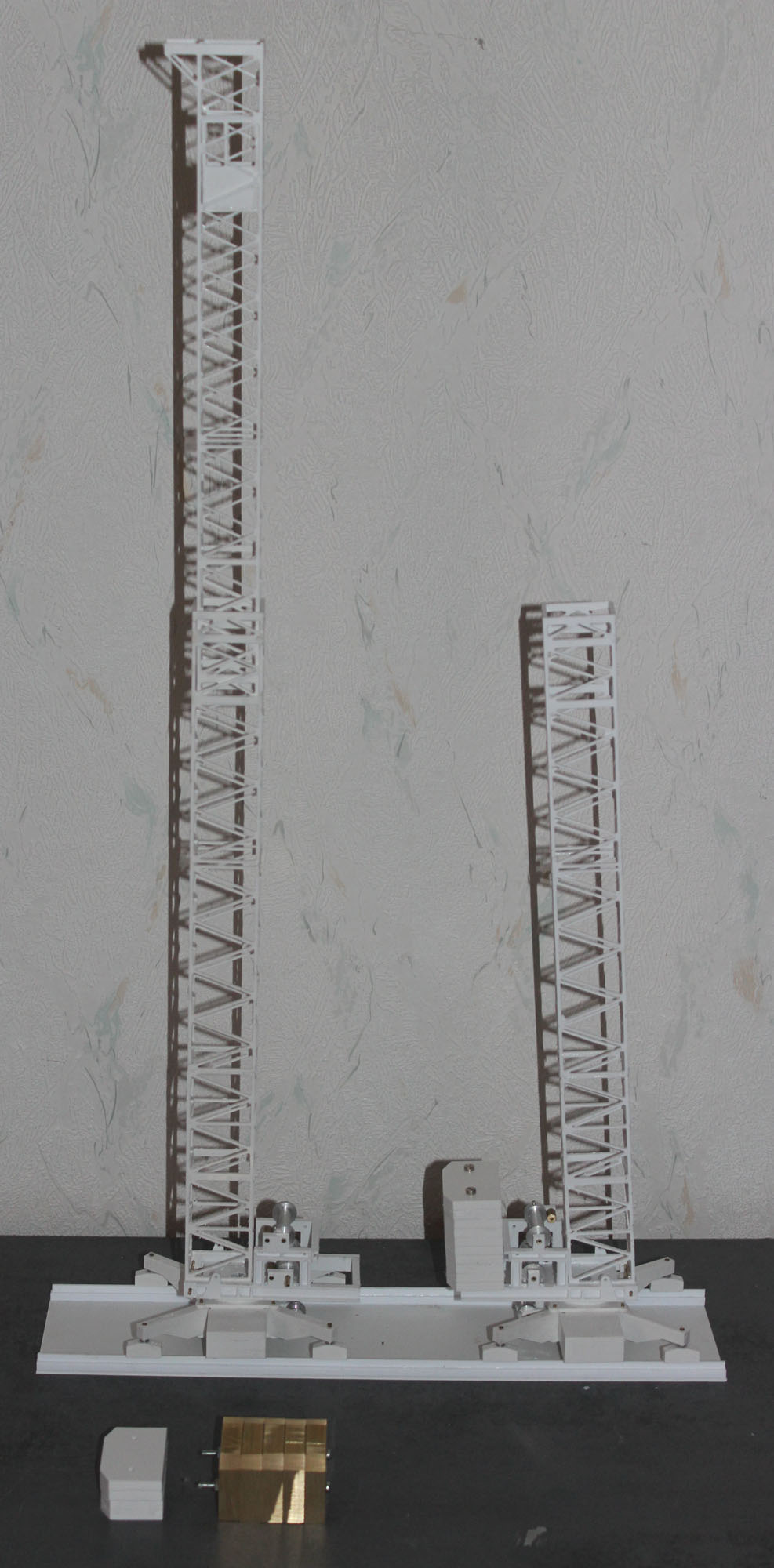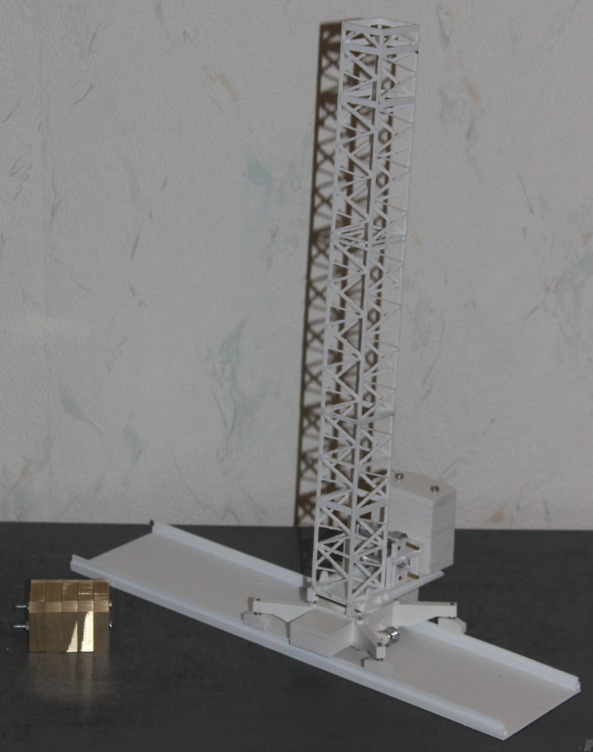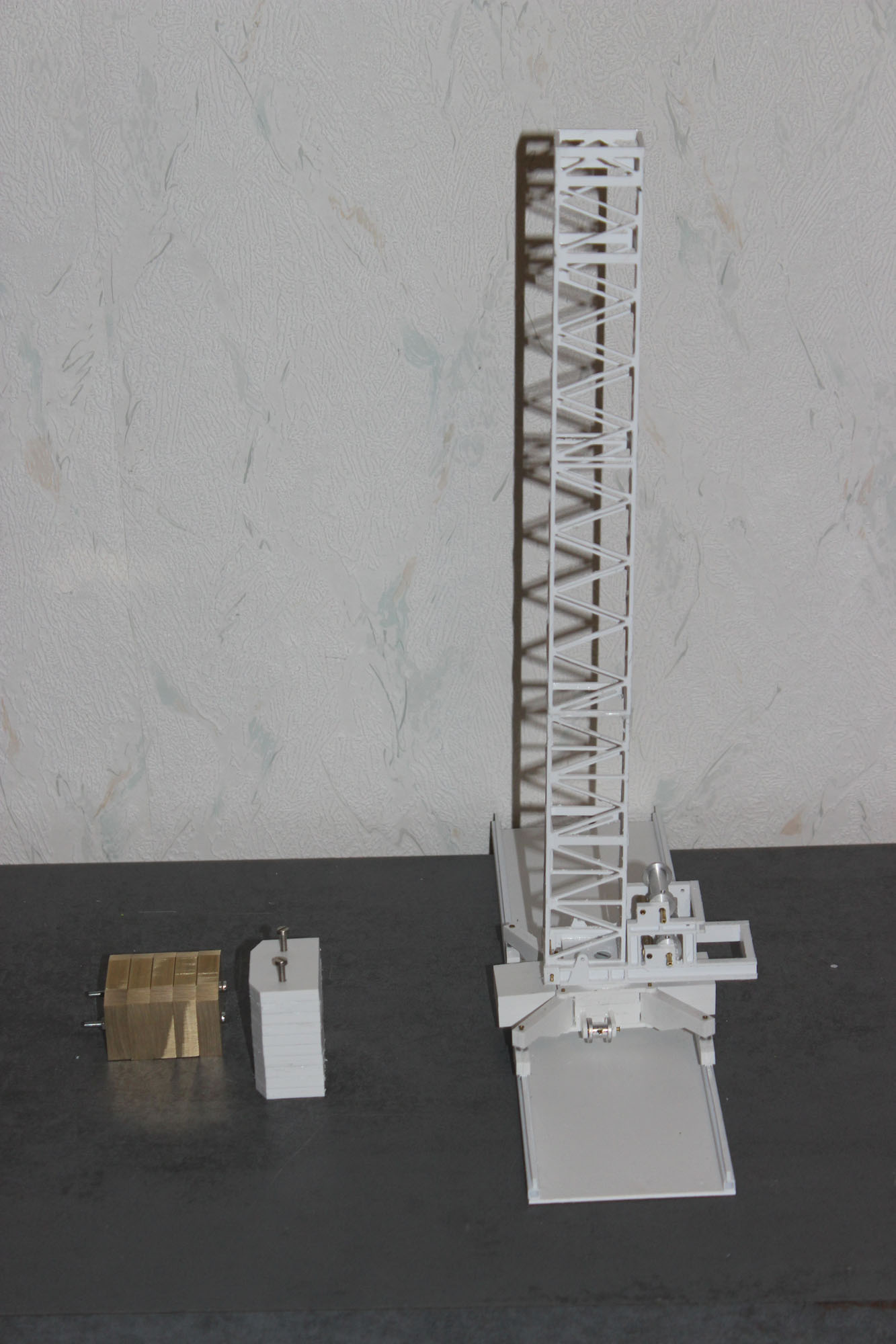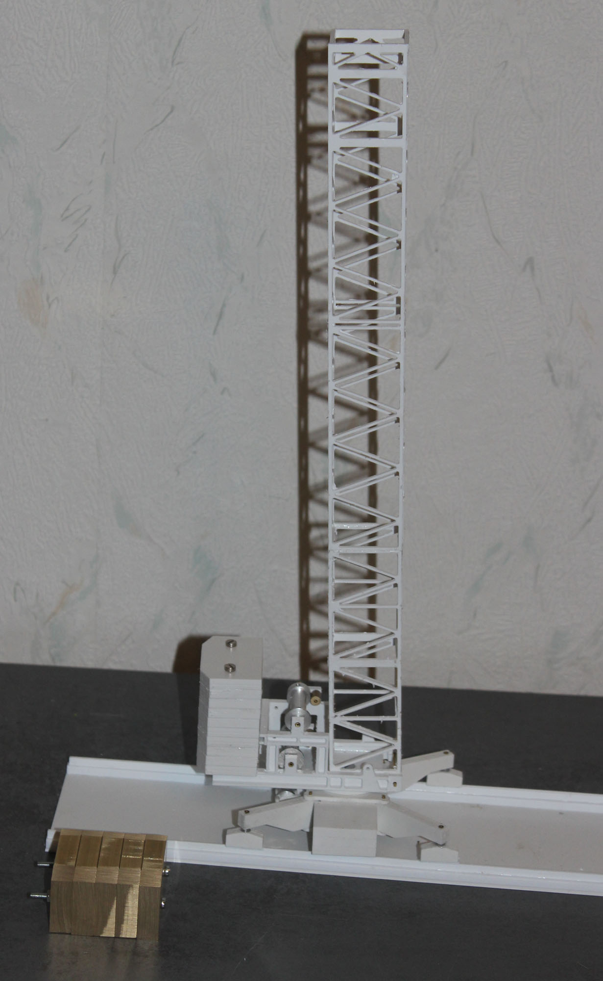 Heute ist der Innenturm dran. Was für ein gewaltiges Teil der Kran wird, machen die beiden Bilder unten klar. Wir sind jetzt schon über 60 cm (mehr als 30 Meter im Original) hoch.