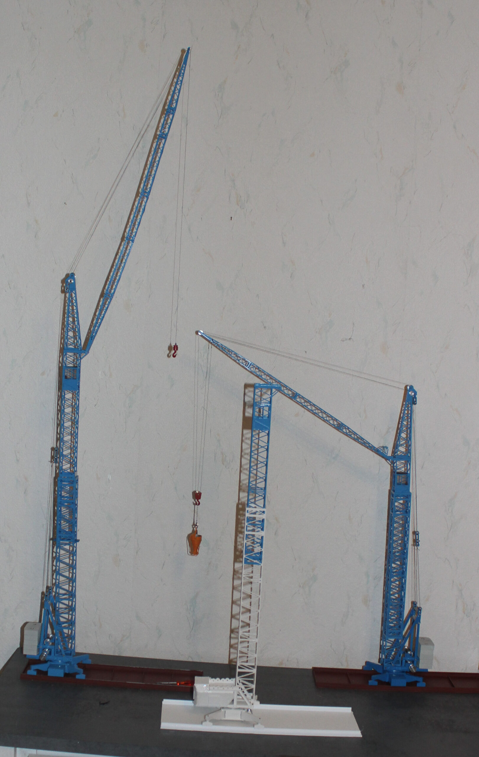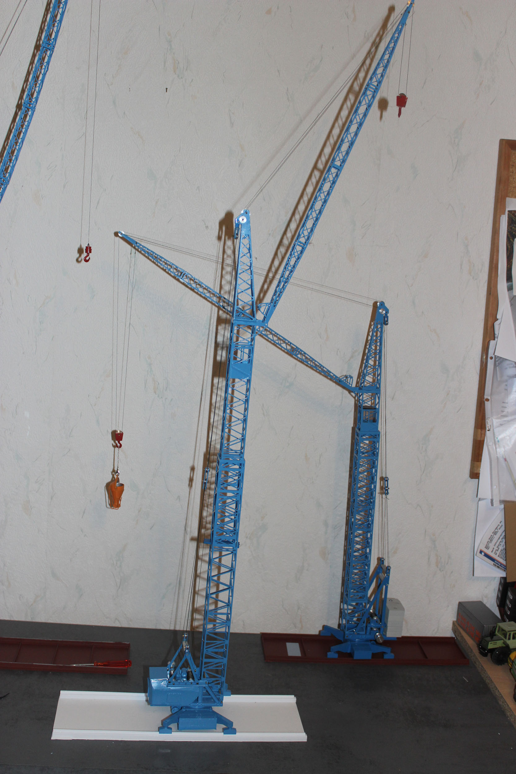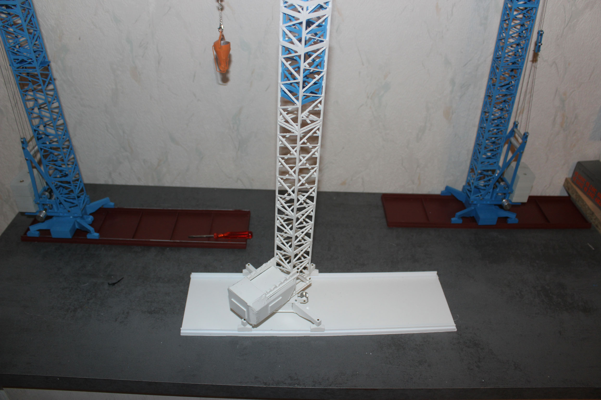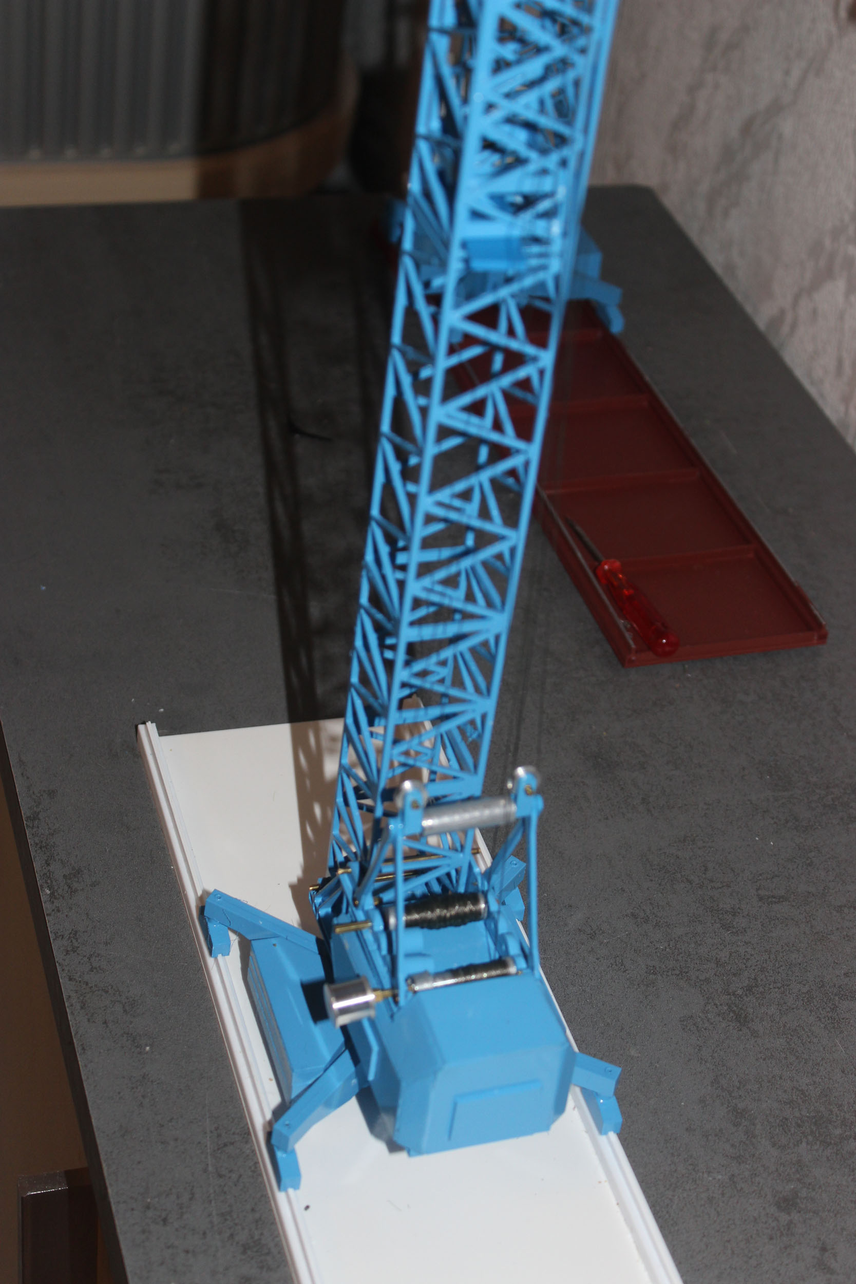 Bilder dieses Krans gibt es nun hier auf dieser Seite. Das 3te bis 5te Bild zeigt den anderen Oberwagen und auch einen anderen Unterwagen (hier noch unvollständig).Der oberwagen in den Aufnahmen ist nur gespachtelt, aber noch nicht geschliffen. Ich wende hier eine speziele Technik an. Gefräste späne werden mit Revell-Kleber gemischt und bilden schnell eine flüssige Paste, Diese wird auf die zu spachtlenden Stellen aufgetragen und 24 stunden trocknen gelassen. danach werden die Stellen verschliffen. Durch den Kleber bekommt nan eine homogene und sehr stabile Oberfläche und ich brauche keine extra Spachtelmasse.