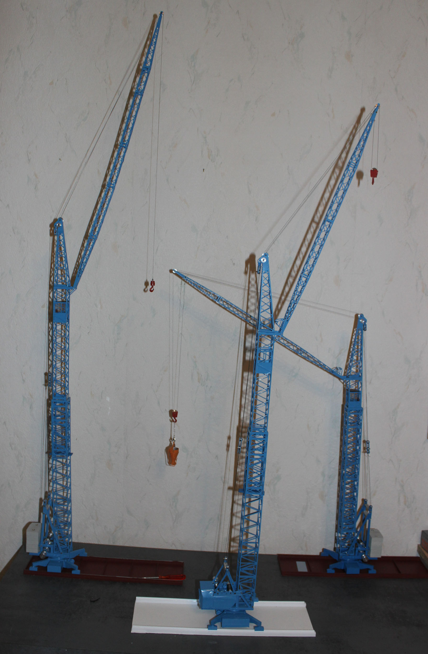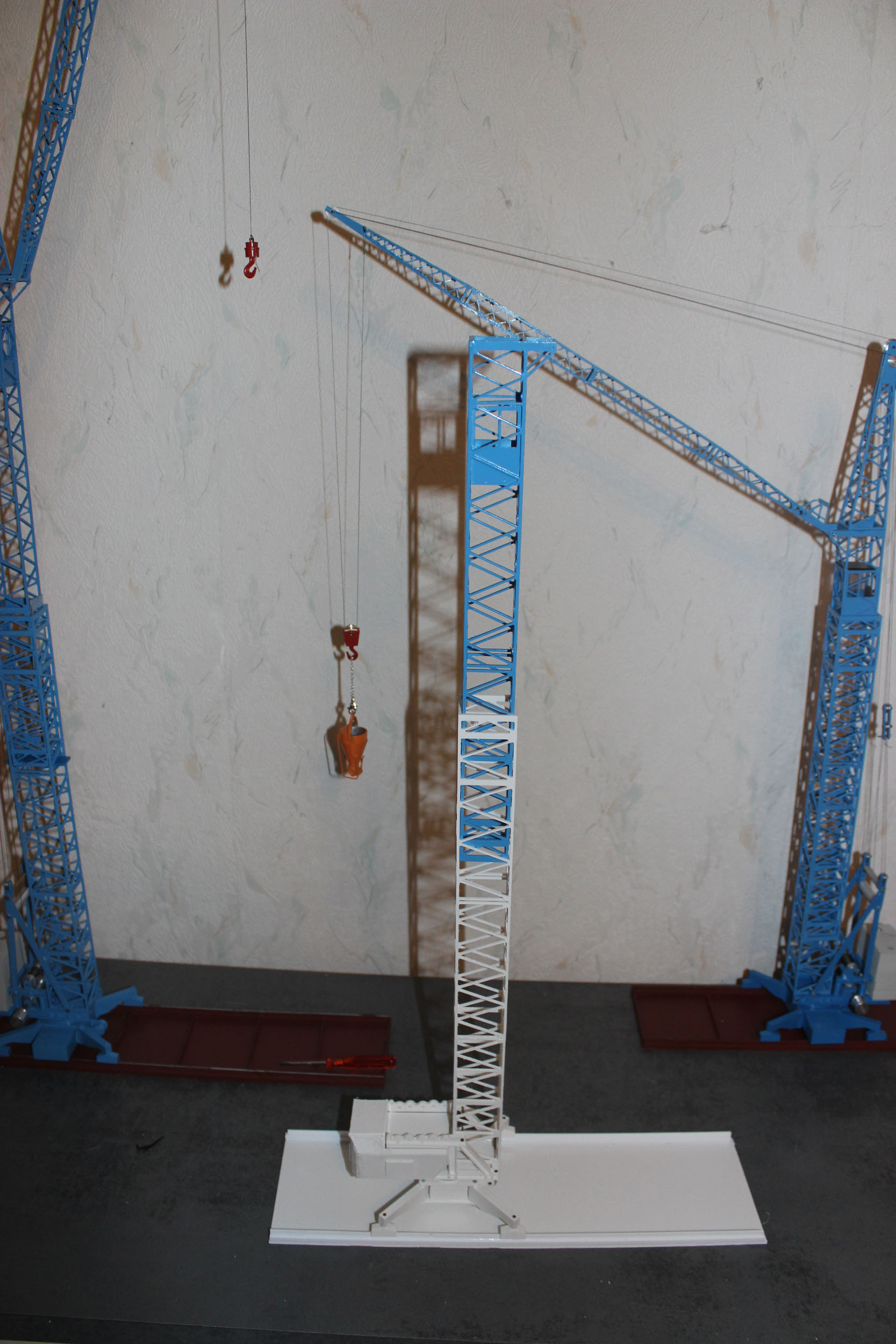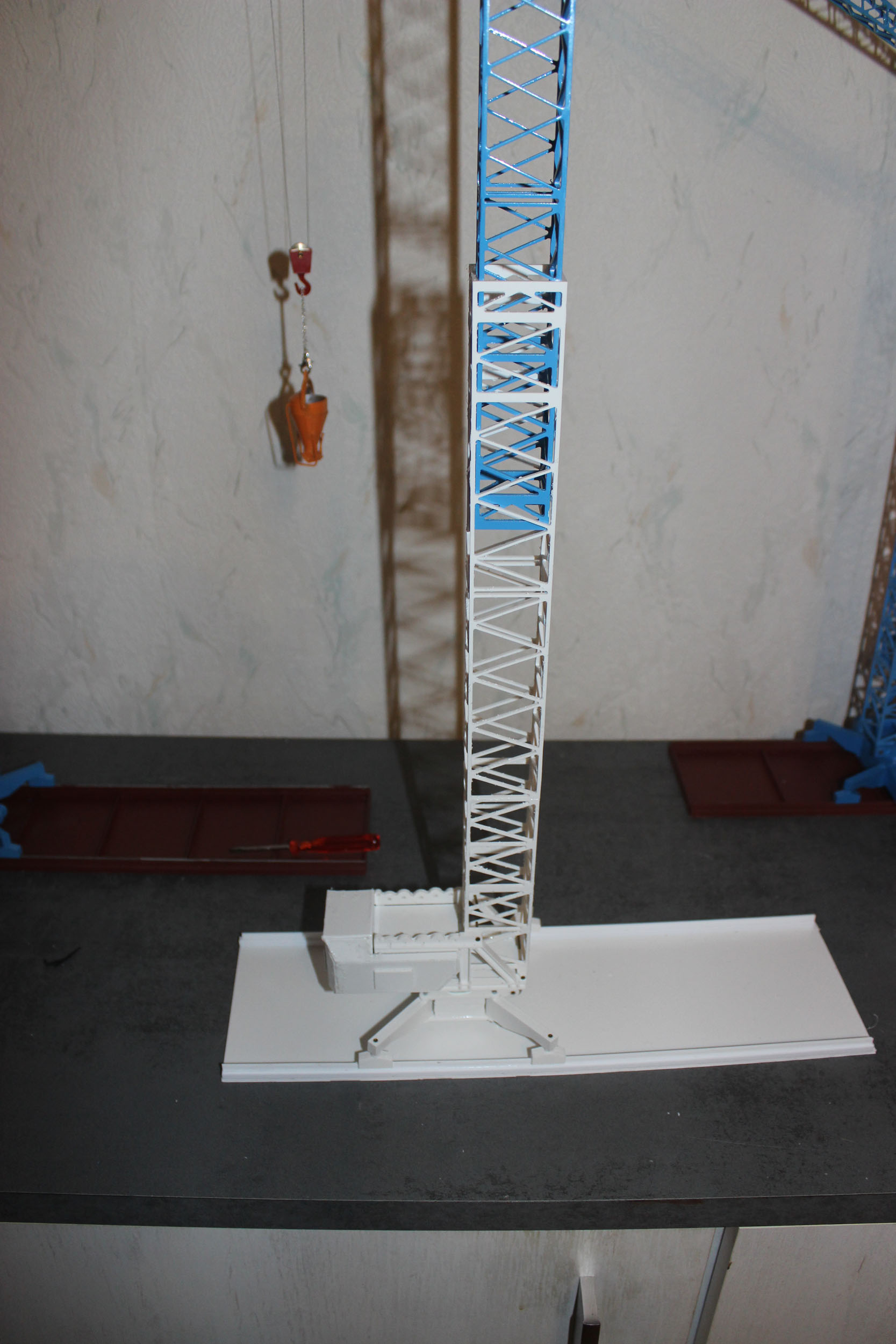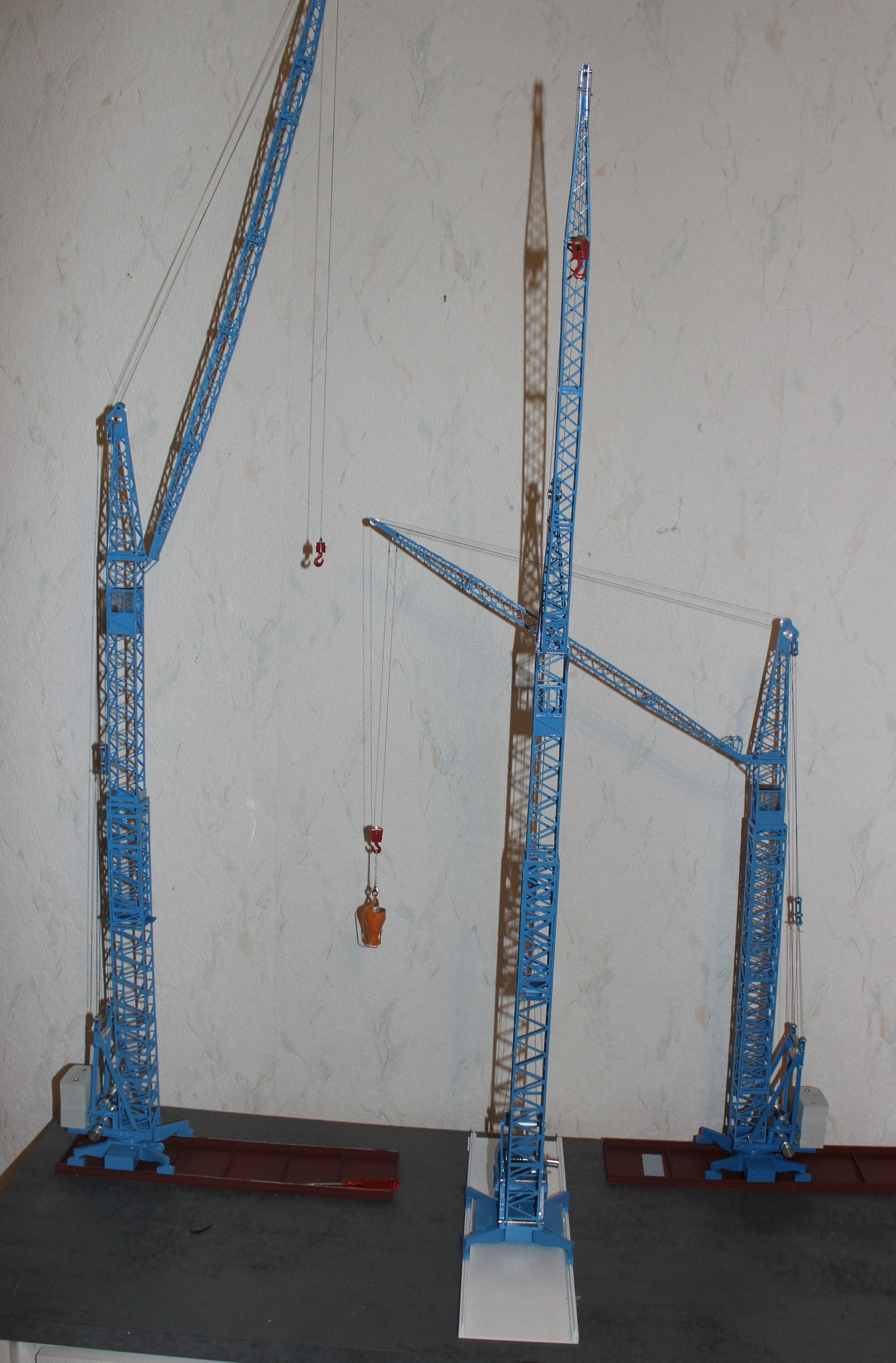 Bilder dieses Krans gibt es nun hier auf dieser Seite. Das 3te bis 5te Bild zeigt den anderen Oberwagen und auch einen anderen Unterwagen (hier noch unvollständig).Der oberwagen in den Aufnahmen ist nur gespachtelt, aber noch nicht geschliffen. Ich wende hier eine speziele Technik an. Gefräste späne werden mit Revell-Kleber gemischt und bilden schnell eine flüssige Paste, Diese wird auf die zu spachtlenden Stellen aufgetragen und 24 stunden trocknen gelassen. danach werden die Stellen verschliffen. Durch den Kleber bekommt nan eine homogene und sehr stabile Oberfläche und ich brauche keine extra Spachtelmasse.